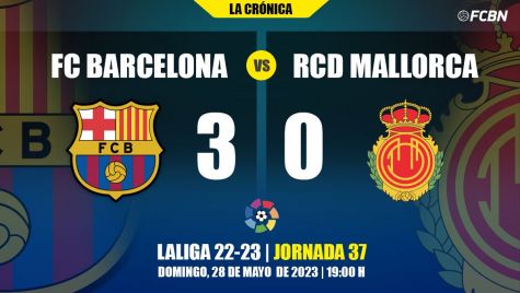 Los azulgrana no dieron respiro a un Mallorca que se quedó sin pulso en su último intento para tener opciones de jugar en Europa. Los de Aguirre no pudieron conectar con Muriqi, muy solo, y perdieron la batalla en el centro del campo. Dejaron todos los ingredientes para que los de Xavi Hernández vivieran generando ocasiones, pero sin acierto en el último pase. Sergi Roberto tuvo el 3-0 en sus botas después de un gran contragolpe de Ousmane Dembélé, pero su remate fue muy cruzado.