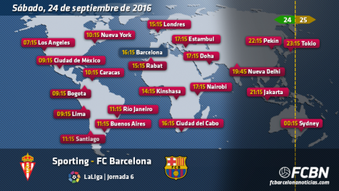 Horarios mundiales y televisión del Sporting vs Barcelona