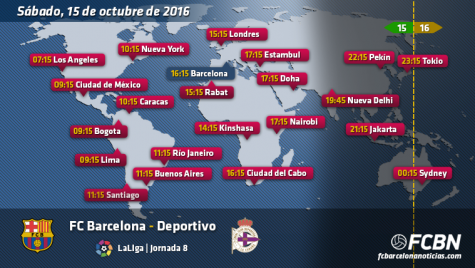 Horarios mundiales y TV del FC Barcelona vs Deportivo