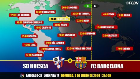 ¿Cuándo y dónde ver el Huesca-FC Barcelona? Guía Internacional con los horarios y los canales de TV que retransmiten en directo y online el partido de la jornada 17 de LaLiga Santander 2020-21