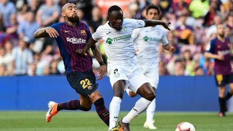Djené lucha por un balón contra Arturo Vidal
