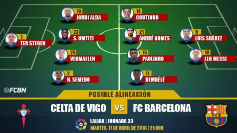 Las posibles alineaciones del Celta-Barcelona (Liga J33)
