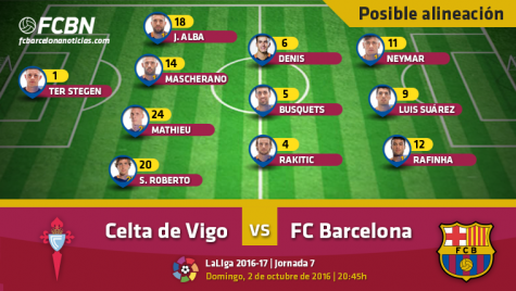 Posibles alineaciones de FC Barcelona y Celta de Vigo: