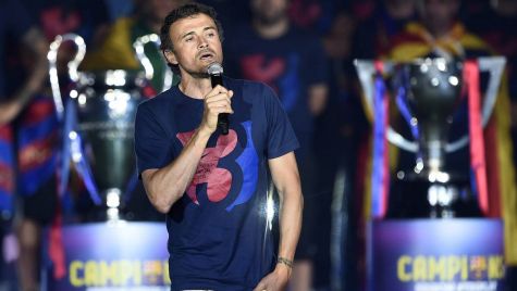 Luis Enrique, celebrando los títulos de la temporada pasada