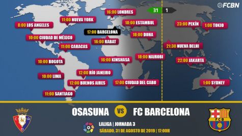 ¿Cuándo y dónde ver el partido de fútbol Osasuna-FC Barcelona? Guía Internacional con los horarios y los canales de TV que retransmiten en directo y online la jornada 3 de LaLiga Santander 2019-2020