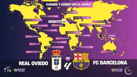 ¿Cuándo y dónde ver Oviedo contra Barcelona? Horarios internacionales y canales de televisión que retransmiten el partido de LaLiga EA Sports 25/26