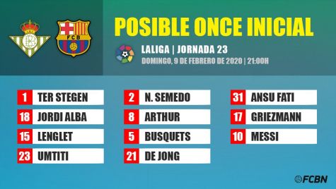 El FC Barcelona​ afronta este domingo contra el Real Betis en el Benito Villamarín el partido de la 23ª jornada de LaLiga Santander. Quique Setién todavía no ha conseguido dar con la tecla para que el equipo recupere el juego fluido, sólido y efectivo, pero lo volverá a intentar contra el cuadro verdiblanco después de caer injustamente contra el Athletic Club en Copa del Rey