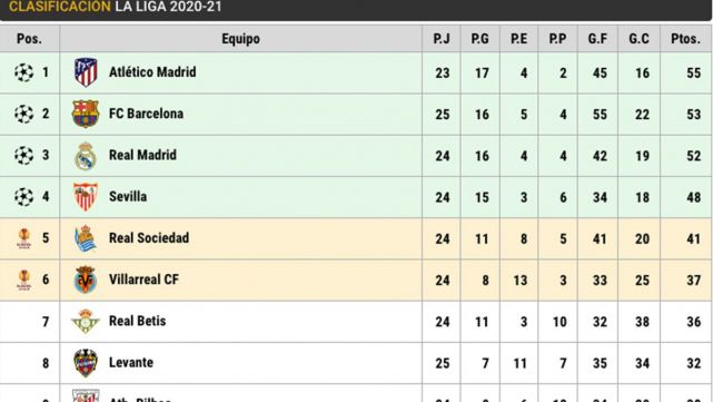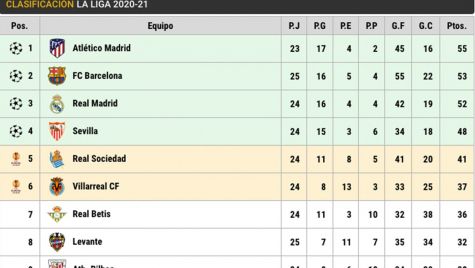 CONSULTA LA CLASIFICACIÓN DE LALIGA 2020-21