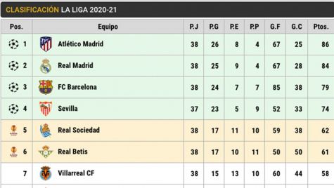 Así queda LaLiga 2020-21: El Atlético, campeón por delante de Madrid y Barça