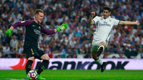 Marc-André Ter Stegen, regateando a Asensio en el Clásico
