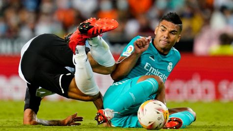 El uruguayo volvió a ser protagonista en el final de la primera parte, tras una dura entrada de Casemiro que fue castigada con una cartulina amarilla. El golpe del brasileño fue muy fuerte y, aunque en la repetición se nota como toca el balón, dejó la plancha del pie peligrosamente sobre Maxi. La acción, que en otras oportunidades pudo ser roja clara, se quedó en un 'aviso'. El VAR revisó y le dio la razón a González Fuertes.