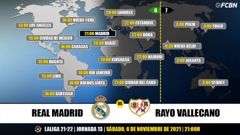 ¿Cuándo y dónde ver el Real Madrid-Rayo Vallecano? Guía Internacional con los horarios y los canales de TV que retransmiten en directo y online este partido de la jornada 13 de LaLiga Santander 2021-2022