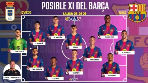 Repasamos la posible formación titular, el banquillos de suplentes y los jugadores lesionados y sancionados del Barcelona de Hansi Flick para el duelo contra el Oviedo. ¡Análisis completo!