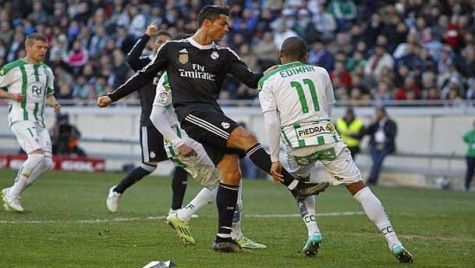 Espectáculo bochornoso de Cristiano Ronaldo, que vio la roja directa por una agresión a Edimar en los últimos minutos del partido. El portugués, totalmente desquiciado, dio una patada sin balón al jugador del Córdoba. El árbitro no lo dudó y le expulsó