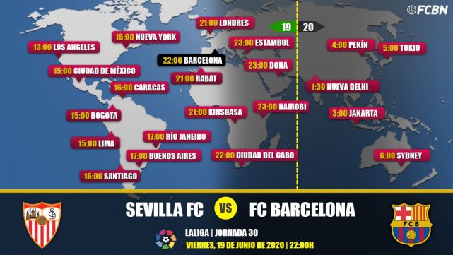 En España, el Sevilla-Barça será televisado en directo el viernes 19 de junio a las 22:00 horas por los canales Movistar LaLiga, Movistar LaLIga 1, M. LaLiga UHD, mitele PLUS y LaLiga TV Bar, a través de los operadores Movistar, Orange, Jazztel y Mitele, que ofrecerán el partido en Internet y con acceso desde tu móvil, tablet, ordenador o Smart TV.
