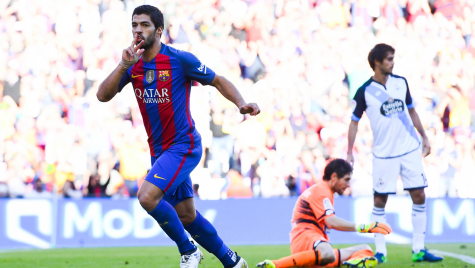 El delantero uruguayo del FC Barcelona, Luis Suárez, marcó un gol contra el Deportivo de La Coruña en el Camp Nou que le catapulta de nuevo a la primera posición en el "Pichichi" de Liga Santander 2016-17, empatado con Griezmann