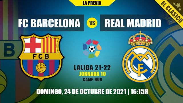 El enfrentamiento más importante de LaLiga Santander se disputa este domingo 24 de octubre en el Camp Nou. El FC Barcelona recibe al Real Madrid para la disputa de la décima jornada del campeonato doméstico y todo está preparado para el espectáculo entre los dos mejores equipos de España, quienes tienen una rivalidad histórica y, sobre todo, muchas ganas de vencer a su eterno rival, en una tarde muy especial, con el primer Clásico con público desde el inicio de la pandemia, en marzo de 2020.
