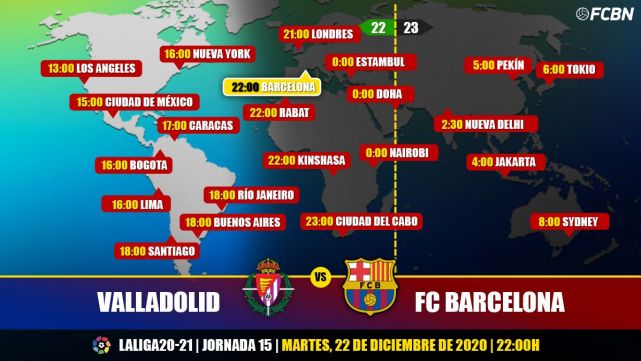 En España, el Valladolid-Barça será televisado en directo el martes 22 de diciembre a las 22:00 horas por los canales Movistar LaLiga, Movistar LaLiga 2, Movistar LaLiga UHD y LaLiga TV Bar, a través de los operadores Movistar y Orange, que ofrecerán el partido en Internet y con acceso desde tu móvil, tablet, ordenador o Smart TV.