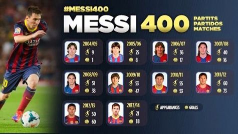 400 partidos oficiales de Leo Messi con el FC Barcelona