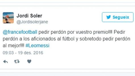 Por si alguno tenía dudas de la injusticia cometida por "France Football" al darle el Balón de Oro 2016 a Cristiano Ronaldo, llegó Leo Messi para que los remordimientos de estos fuesen peores. Y la gente, que no es tonta, bombardeó en Twitter a los galos