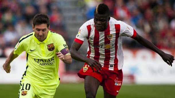 El Almería se avanzó en el marcador contra el FC Barcelona tras una pérdida de Leo Messi al borde del área rival cuando intentaba marcharse de cuatro contrincantes a la vez. El centro del campo y la defensa culé, sin embargo, no bascularon correctamente