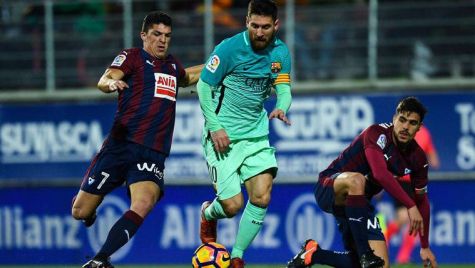 El líder del FC Barcelona en el flanco de ataque, Leo Messi, no fue capaz de ayudar directamente a su equipo a que marcara contra el SD Eibar en la primera mitad -el tanto llegó gracias a un disparo aislado de Denis Suárez-, pero ofreció un recital de pases al espacio que se convirtieron en claras oportunidades de gol para algunos de sus compañeros.