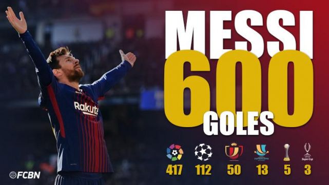 Las 600 dianas a las que ha llegado se distribuyen de la siguiente manera: 417 en LaLiga Santander -máximo realizador histórico destacado-, 112 en Champions League -cada vez más cerca de Cristiano Ronaldo-, 50 en Copa del Rey -a la espera de la final contra el Valencia-, 13 en Supercopa de España, 5 en Mundial de Clubes y 3 en Supercopa de Europa.