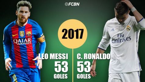 Leo Messi y Cristiano Ronaldo han marcado 53 goles cada uno en partidos oficiales este año 2017, tanto con sus equipos como con sus selecciones. El argentino se ha vuelto un especialista en LaLiga, mientras que el luso lo es en Champions