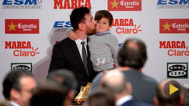 Que Leo Messi y Luis Suárez comparten momentos familiares es de sobras conocido, y es por eso que existe una gran relación entre el uruguayo y los hijos del '10'. Thiago se aburría en la entrega de la Bota de Oro, y ha encontrado un divertido pasatiempo