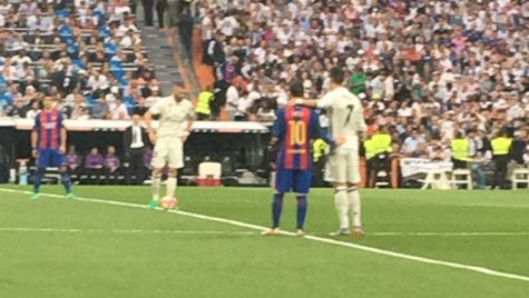 Con toda la polémica derivada del Real Madrid-Barcelona de este pasado domingo, pocos se percataron de una escena que tuvo lugar justo antes de que empezara a rodar el balón entre Leo Messi y Cristiano Ronaldo, cuando Karim Benzema estaba a punto de sacar desde el centro del campo.