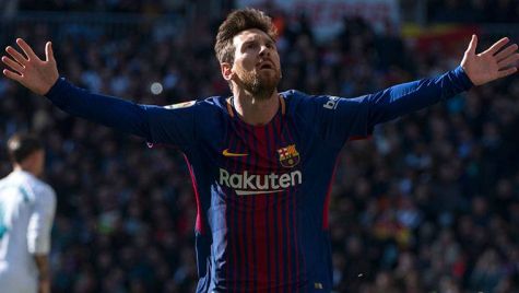 Leo Messi celebra un gol en el último Clásico en el Santiago Bernabéu