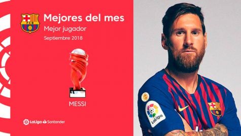 Leo Messi ha sido galardonado este miércoles con el premio al mejor jugador del campeonato en el mes de septiembre, del que los azulgrana salieron todavía en lo más alto de la tabla -cayeron al segundo puesto en octubre-. Tras las victorias frente a Huesca y Real Sociedad, siguieron un empate contra el Girona, una derrota en Leganés y otra igualada frente al Athletic Club.