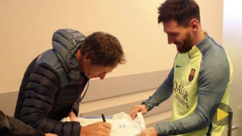 Leo Messi también pide autógrafos a sus grandes ídolos