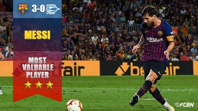 Messi demostró que, pese a que los años siguen pasando, es el líder indiscutible del Barça. Ante un Alavés sólido que se defendía con efectividad, el delantero argentino se inventó un tiro de falta por debajo de la barrera. Marcó dos goles e hizo dos palos
