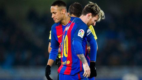 Leo Messi y Neymar Jr, durante el partido contra la Real Sociedad