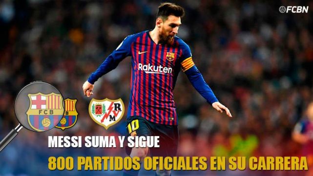 Este sábado, contra el Rayo Vallecano en el Camp Nou, Leo Messi ha llegado a los 800 partidos oficiales en toda su trayectoria deportiva. Un número de locos del que pocos futbolistas pueden presumir hoy en día. Esos casi 800 encuentros se dividen en 671 con la camiseta del FC Barcelona y 128 con la selección Argentina.
