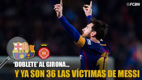 Messi se quedó por lo tanto sin 'hat-trick', pero aun así marcó dos goles que le sirvieron para sumar una nueva víctima a su amplia lista. Con el Girona, ya son 36 los equipos que han recibido goles de Leo Messi desde que el rosarino forma parte de la plantilla del primer equipo del FC Barcelona.