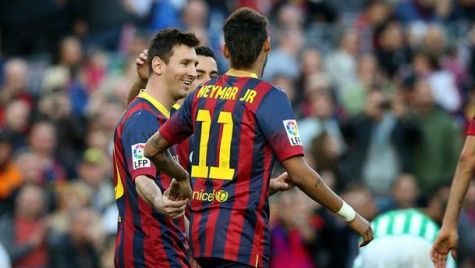 El Barça se deshizo del Betis con dos goles de Messi y un autogol de Jordi Figueras. El argentino y Neymar han marcado siete de los últimos ocho goles azulgranas. El otro se le atribuye al central del Betis. Hace cuatro partidos que el '10' y el ?11' se reparten las dianas del Barça. A continuación repasamos otros datos del 3-1 de la 32ª jornada de Liga: