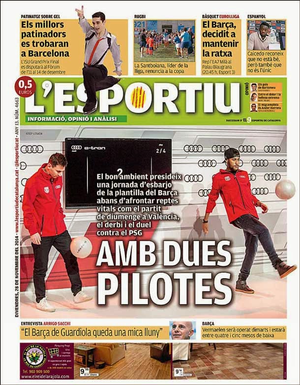 Portada L´Esportiu (28/11/2014) - Con dos pelotas