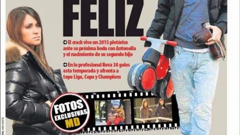 Portada del periódico Mundo Deportivo, sábado 7 marzo 2015. El crack vive un 2015 pletórico ante su próxima boda con Antonella y el nacimiento de su segundo hijo. En lo profesional lleva 38 goles esta temporada y afronta a tope Liga, Copa y Champions.