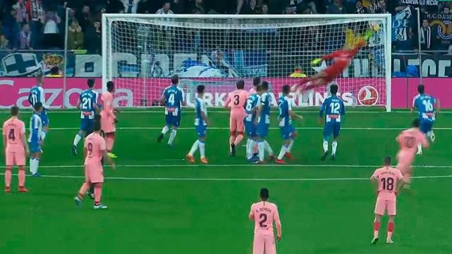 ¿Cómo puede haber quedado quinto en el Balón de Oro 2018? Es de risa, viendo lo que hace sobre los terrenos de juego. El astro argentino del FC Barcelona, Leo Messi, se convirtió en la pesadilla de los aficionados 'pericos' de Cornellá-El Prat con un auténtico golazo de falta directa, de los que sólo él sabe marcar y que suelen ser medio penalti. El '10' puso el balón en la misma escuadra, imparable para Diego López.