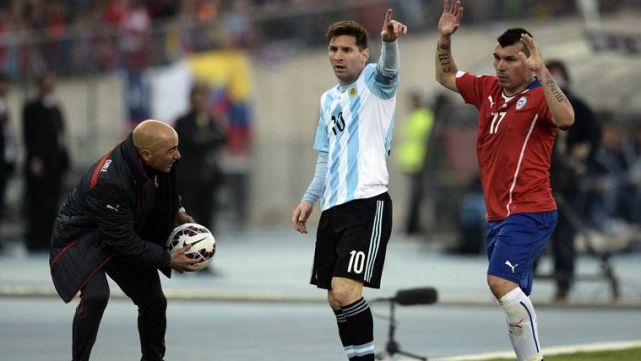 Jorge Sampaoli y Leo Messi, durante un Argentina-Chile en una imagen de archivo