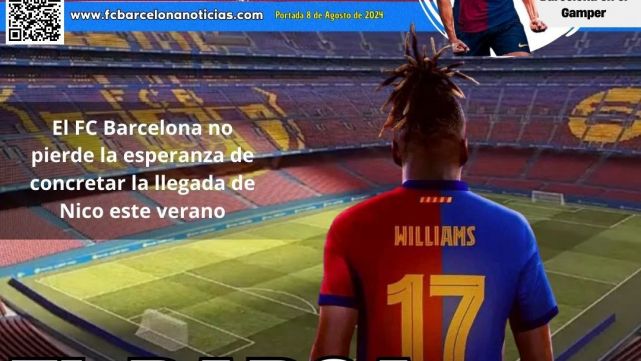 Esta es la portada de FCBN de hoy, jueves 8 de agosto de 2024: La "operación Nico Williams" podría no estar cerrada y dar un giro de 180 grados. Todo indicaba que el jugador seguiría en Bilbao, sin embargo, el Barça no se rinde y sigue luchando su fichaje