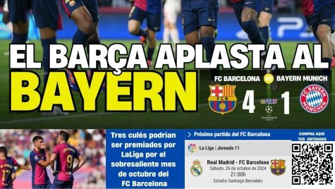 Portada de FCBN del jueves 24 de octubre de 2024: El mejor Barça ha vuelto a lo grande, goleando al Bayern (4-1) y confirmando que ahora mismo es el equipo más en forma de Europa