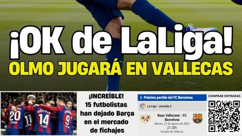 Portada FCBN 27/08/2024: ¡OK de LaLiga! Dani Olmo jugará en Vallecas