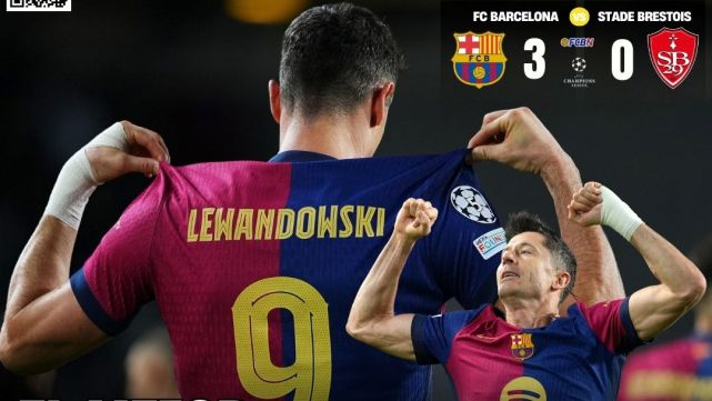 Portada de FC BARCELONA NOTICIAS del miércoles 27 de NOVIEMBRE de 2024: Robert Lewandowski ha grabado su nombre en la historia de la UEFA Champions League. Con su doblete ante el Stade Brestois el delantero del FC Barcelona ha superado la espectacular cifra de 100 goles en la máxima competición europea (101), un hito que solo habían conseguido dos jugadores hasta ahora: Cristiano Ronaldo (140) y Leo Messi (129).