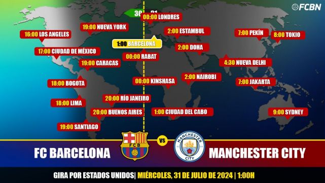 A continuación, los horarios y TV del Barça-City en Europa y en América: