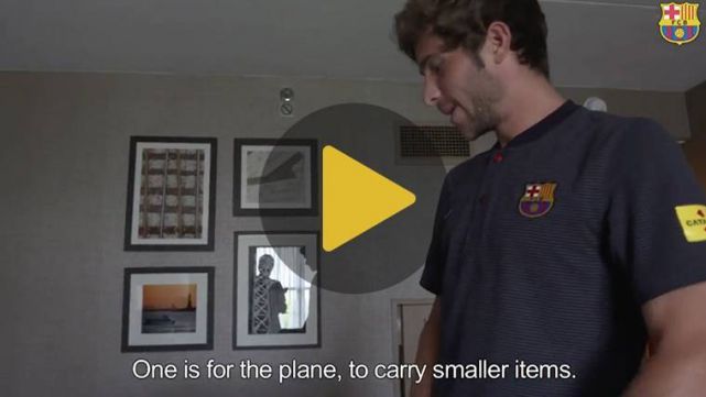El '20' azulgrana, uno de los 26 jugadores convocados por Ernesto Valverde para la gira, explica qué objetos se ha llevado a Estados Unidos para distraerse en sus ratos libres. ¿Qué habrá dentro de la maleta de Sergi Roberto? Un divertido vídeo