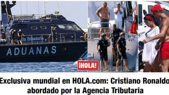 Exclusiva de impacto mundial la que ha lanzado la revista "Hola" este miércoles. En la publicación aparecen imágenes de la Agencia Tributaria Aduanera abordando el yate de Cristiano Ronaldo en Formentera para proceder a un registro sorpresa, que ha dejado con la boca abierta tanto al jugador del Real Madrid como a su novia, Georgina, y a los invitados al navío del jugador portugués.