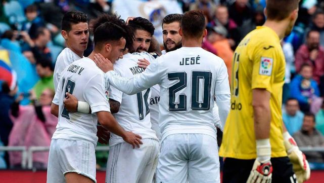El Real Madrid de Zidane salió a por todas ante el Getafe, al que sentenció en el minuto 40 cuando Isco anoto el segundo gol. Benzema había marcado primero y Bale lo hizo en el segundo tiempo. Sarabia maquilló y James y CR7 cerraron la cuenta